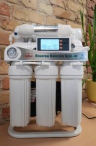 Sistēmas ūdens atsāļošanai (reversā osmoze)- ūdens plūst caur membrānu no vairāk koncentrēta uz mazāk koncentrētu šķīdumu. Ūdens atsāļošana – ūdens sagatavošanas process ar mērķi samazināt šķīstošo sāļu koncentrāciju ūdenī līdz uzstādītajam rādījumam. Apgrieztās osmozes sistēma – daudzpakāpju dzeramā ūdens attīrīšanas sistēma atvērtā tipa ar uzkrāšanas tvertni dažādu tilpumu tīram ūdenim. Apgrieztās osmozes filtrs ir ļoti kompakts un ērts, viegli ieliekams zem izlietnes. Uz vāka aizmugurējās sienas ir stiprinājumu caurumi, kas ļauj sistēmu pieskrūvēt pie sienas, vai to var novietot uz grīdas. Komplektā var būt iebūvēta spiediena palielināšanas sūknis, kas ļauj pieslēgt šo iekārtu pie mājsaimniecības ūdensapgādes sistēmas pat ar zemu spiedienu. Apgrieztās osmozes filtrs nodrošina universālu ūdens attīrīšanu no dzeramā ūdens mehāniskajām piemaisījumu daļiņām (rūsas, dūņas, smiltis utt.), kā arī no izšķīdušām vielām, piemēram, brīvā hlora, hlororganiskajām savienojumiem, pesticīdiem, naftas produktiem, smagajiem metāliem, cietības sāļiem, izšķīdušā dzelzs un citiem organiskajiem un neorganiskajiem savienojumiem. Novērš nepatīkamas smaržas, uzlabo ūdens garšu, samazina nogulsnes uz traukiem. Iepriekšējās attīrīšanas kārtridži ir paredzēti mehānisko daļiņu un suspensiju noņemšanai, kā arī noņem hloru, organiskās vielas, gāzes un smaržas, uzlabo garšas kvalitāti un krāsu. Šo kārtridžu kalpošanas laiks ir 6 mēneši. Pamatelements ūdens attīrīšanā ar apgrieztās osmozes sistēmu ir attīrīšana caur membrānu. Vienkāršoti tā ir puscaurlaidīga materiāla apstrāde, caur kuru var iziet tikai ūdens un skābekļa molekulas. Membrānas filtrējošās virsmas piesārņojums ir neatgriezenisks un noved pie pilnīgas ūdens attīrīšanas procesa apstāšanās. Tādēļ tiek izmantota iepriekšēja ūdens filtrācija, un membrānas darbība tiek organizēta tā, ka visi piesārņojumi, kas pie tā nonāk, nenonāk uz tās virsmas, bet tiek noskaloti kanalizācijā. Membrānas kalpošanas laiks, ja ir automātiskā membrānas skalošana, ievērojami palielinās. Inline kārtridžs uz granulu aktivētā ogļa bāzes – ogļu postfiltrs, kas uzlabo ūdens kvalitāti. Komplektācija: apgrieztās osmozes sistēma; uzkrāšanas tvertne, hromēts dzeramā krāns; savienojošo caurulīšu un vārstu komplekts; komplekts pieslēgšanai (ieguršanai) ūdensapgādē; komplekts pievienošanai kanalizācijas sistēmai; montāžas-demontāžas atslēgas.
